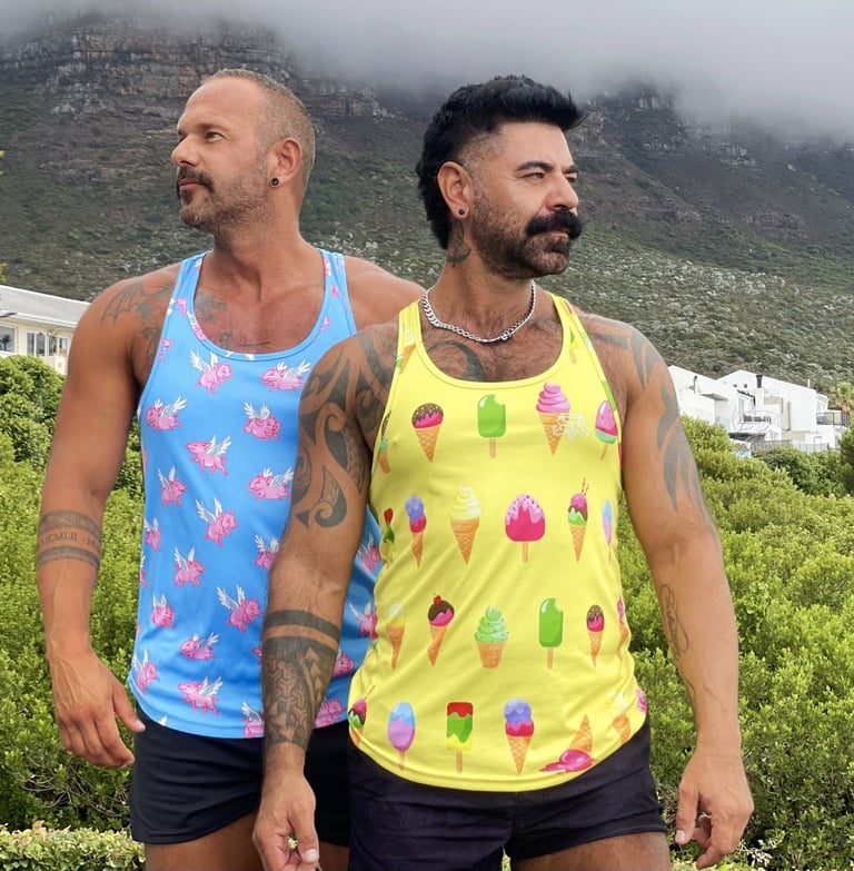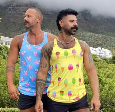 As we shared the same interest in Gym, Pop culture, Design and Sillyness in life, we decided to combine our Dutch and South African creativity into creating funky gym/lifestyle wear that makes you pop out in any environment.